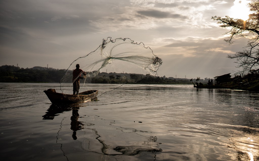 Alex is a fisherman on the Nile just a couple miles from the source. He fishes overnight in a handmade wooden canoe, catching Nile Perch and Tilapia to support his family.